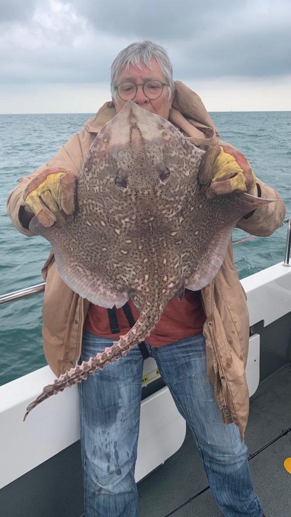Photo from Jan H. Thornback Ray nice specimen caught at the bolders sandbanks nr Selsey. In solent on Wetwheels. A fantastic day we all caught fish and a few for the plate. And to top it all a pod of 5 Dolphins 🐬 turned up just as we were saying our best wishes to a beloved and respected member we lost at Christmas. Thank you Wetwheels for another great fishing experience 👍 and for all the assistance from Keith the skipper and Chris who made sure we had bait ready when we needed it and helped greatly.