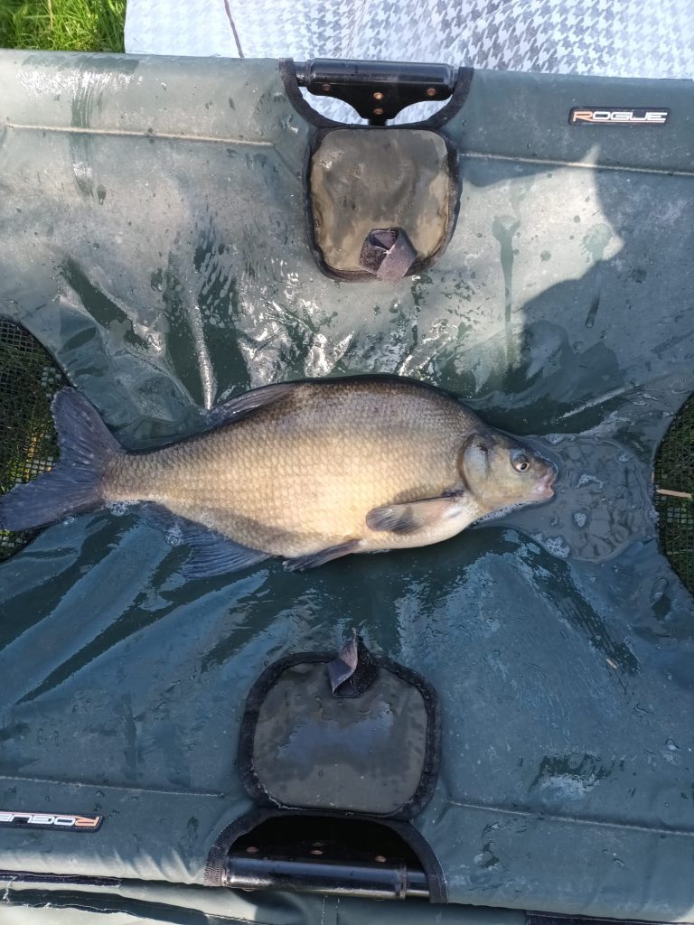 Photo from Mike W. We are off with a Brŕream 5 lbs on the nose. Caught on new pink prototype feeder groundbait. Must have made a mistake in the mix, or did Steve switch labels on my ingredients? On our venue 6th April